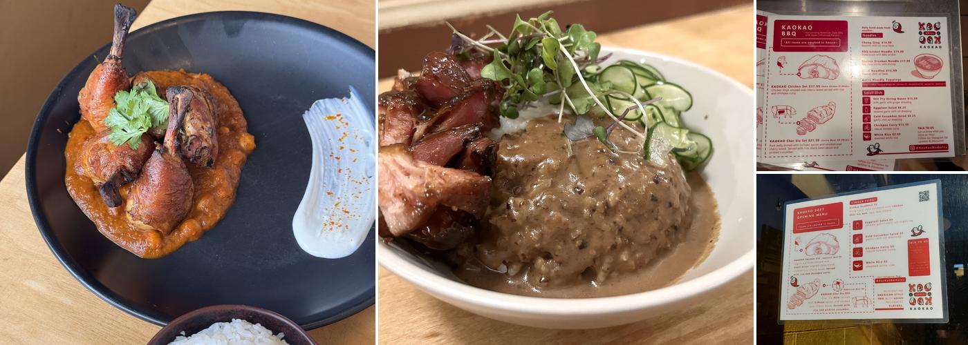 KAOKAO Grill is a fast-casual restaurant known for serving fantastic food with great aromatics and flavor. Their chicken and chickpea dish, along with the char siu pork, have received high praise for the perfectly moist chicken and sticky, sweet, fatty, and meaty BBQ pork. The char siu is celebrated for its tender, clean, and flavorful qualities, with some customers calling it out of this world. The setup may appear sparse, but the decoration is cute, and the staff are friendly and super kind, taking time to chat with guests. Vegetarian options include a cucumber salad that has received mixed reviews, with some finding the spicy and numbing version to be the best they have had in the US. Although some feel the eggplant salad has a strong star anise aroma, others enjoy the variety of flavors. Despite being slightly expensive, the satisfying meals offer good value, especially with cash discounts. Many recommend trying both the pork and chicken dishes, which are cooked perfectly—tender and juicy. While some believe the char siu pork plate is decent but not phenomenal, others consider the combination of American-style barbecue with Asian elements to be excellent. The casual vibe makes it a great neighborhood restaurant for everyday eats, with customers expressing eagerness to return.