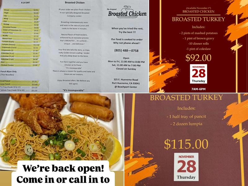 Broasted Chicken in Ventura County is known for its flavorful chicken and Filipino noodles. This small, unassuming restaurant has limited seating inside but offers a few tables outside for diners. Customers often mention that there is a little wait after placing an order, but the delicious taste makes it worthwhile. The menu features chicken, pancit, lumpias, and empanadas, all served in large portions at affordable prices. The chicken is flavorful, moist, and cooked just right, always made fresh when ordered. The pancit is flavorful and cooked perfectly, while the lumpia is crispy and not greasy. The place offers actual Filipino style fried chicken, attracting those who love crispy, juicy, and seasoned dishes. Service is fast and friendly, even when busy, and the atmosphere is simple, clean, and welcoming. Many customers appreciate supporting this family-owned spot, which consistently provides tasty comfort food that hits the spot.