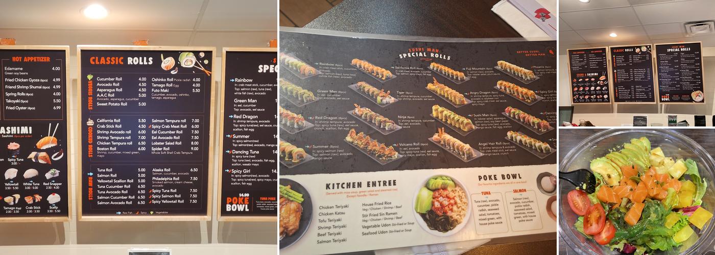 Sushi Man is a sushi restaurant that offers a variety of sushi dishes, including Takoyaki (5pcs) and Fried California Roll. Customers praise it as the best sushi in town, made fresh with a huge team of sushi chefs behind the counter. The selection is vast, and the staff is extremely accommodating and friendly. They let you add or remove anything, with some options costing an extra $1, which many find worth it. The prices are amazing, and you get plenty for the price. Their sauces, like the mango and eel sauces, are awesome and available to order on the side. Everything is packaged very well for delivery, with care taken to select the right containers. While the food is generally well-received, some have noted issues with the quality of the rice and the lack of octopus in the Takoyaki. The restaurant's small seating area and the inconvenience experienced with the Fantuan delivery service, including unclear fees and poor communication, have also been mentioned as drawbacks. Overall, Sushi Man provides a decent sushi experience, though some customers feel it may be more akin to a "fast food" sushi restaurant.