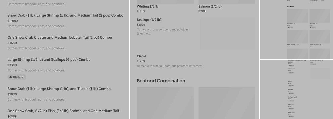 The menu features an array of options, including succulent shrimp, perfectly cooked broccoli, and savory potatoes. Customers have praised the quality of the seafood, with the shrimp described as popping with flavor in each bite. The restaurant also offers a selection of sides, such as corn and boiled eggs, to complement the main dishes.