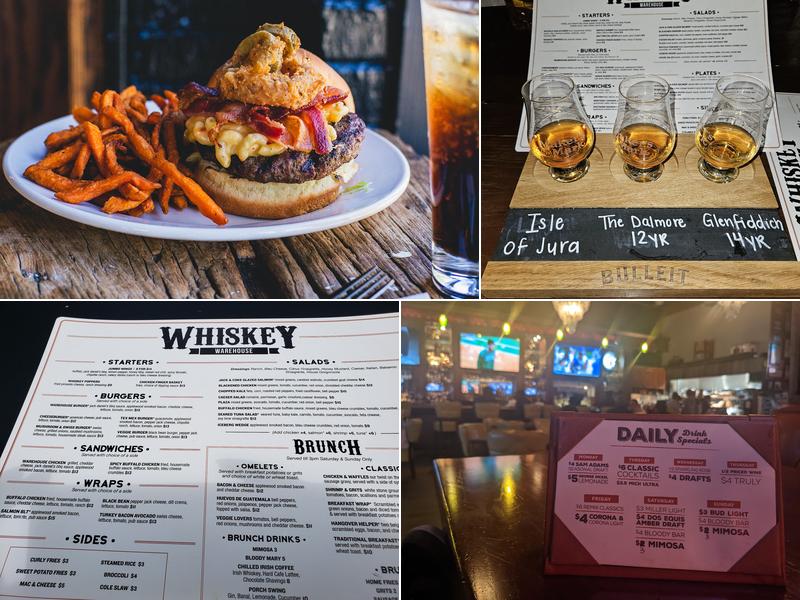 Whiskey Warehouse offers a cozy and relaxing atmosphere with a short but specific menu. Customers often praise the chicken tenders, though some suggest changing the grease more often. The star dishes include peachy chicken pasta, chicken wrap, and poppers. Many enjoy the salmon BLT wrap and jumbo wings, while others recommend the Buffalo chicken wrap with curly fries. The restaurant features great service and a laid-back vibe, making it perfect for a relaxing dining experience. The service is known to be fast and friendly, and it is a good place to watch a sports event. During busy times, parking may be limited. Recent reviews highlight excellent food, great service, and fun drink specials like $5 Jack and Coke. Customers also enjoy the deviled eggs and appreciate the casual, friendly atmosphere.