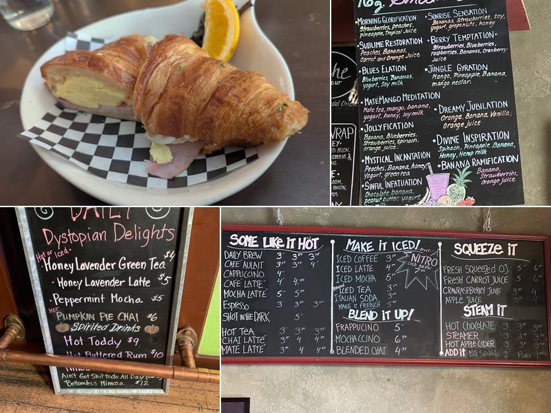 Comma Coffee offers a cozy and inviting breakfast and coffee experience in a charming Alice in Wonderland-themed setting. The café features a variety of games to enjoy while waiting for orders, and the coffee, including iced vanilla coffee, is known for its strength and delicious taste. Customers often comment on the fantastic decor, which includes vintage posters and snappy sayings, and the high quality of food and coffee compared to nearby chains. The menu includes a range of sandwiches, such as the "Ultimate Creation." The atmosphere is warm, lively, and perfect for relaxation, remote work, or supporting a local business. Outside seating is available, with a cool outside window for ordering, and the place often has a lively vibe with people strolling the main drag with their dogs. Visitors have enjoyed treats like coffee and a heated chocolate chip strawberry muffin, and many appreciate the friendly staff and beautiful decor. The café also has plenty of seating, including a couch in the back and a large table for groups, and offers super large coffee cups for those who love a bigger brew.