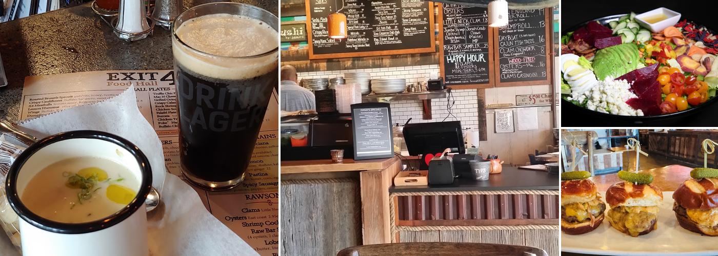 Exit 4 Food Hall offers a diverse range of cuisines with a lively and vibrant atmosphere. While the space can be a bit dimly lit, making it sometimes challenging to see the extensive menu, the staff provides friendly and attentive service, even during busy times. Customers enjoy the variety of options, including vegetarian, meat, and seafood dishes, along with popular items like the wood-fired Mac and Cheese, Korean sticky wings, and Korean ribs. The restaurant is praised for its delicious cocktails such as the pickle back Margarita and s'mores espresso martini. Recent visitors have also loved the skillet cookie, artichoke pizza, and lemon hummus. The atmosphere is pleasant, and the food quality remains generally good, making it a popular spot for families and groups seeking a quick, enjoyable meal. Parking is paid street, and the menu is accessible via iPads, with prices considered very affordable. Overall, Exit 4 Food Hall is appreciated for its friendly staff, tasty dishes, and inviting environment.