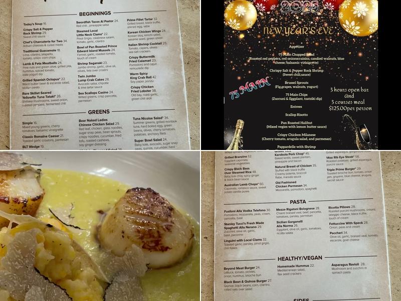 While the food is excellent, some diners have mentioned feeling rushed as their meals arrived quickly after appetizers. There was also an instance where the filet was out of stock after a wait of 15-20 minutes, which was unusual given their ordering system. Despite these small issues, many have praised the friendly service, good wine selection, and overall atmosphere, making 75 Main a popular spot for many seeking a delightful evening.