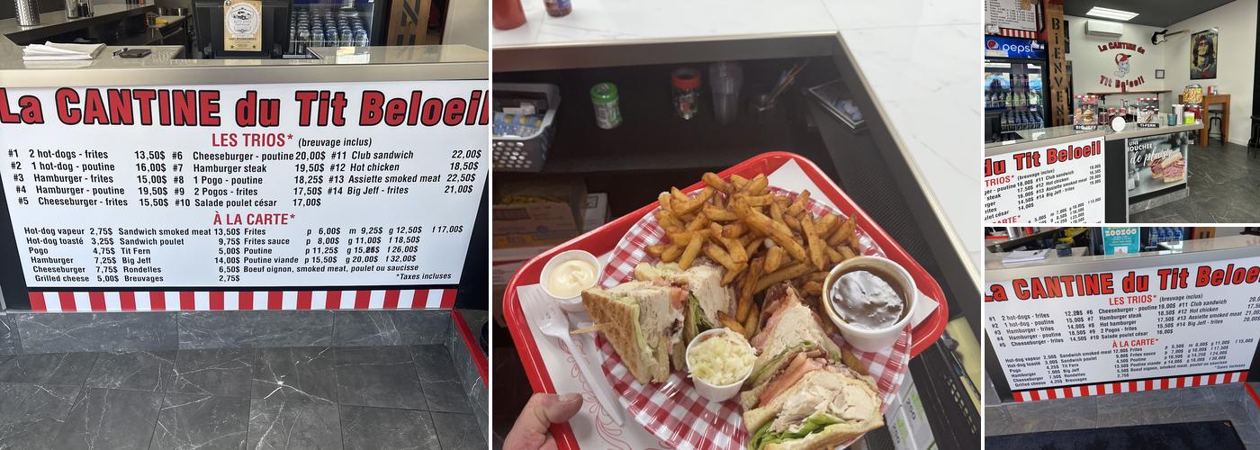 La Cantine du Tit Beloeil offers excellent poutine with well-measured fries, sauce, and cheese, as well as delicious hotdogs. The restaurant features a rock atmosphere and decor that allows for sharing memories. The staff provides fast and impeccable service. Customers find it a beautiful place, well received, with excellent fries and very affordable prices. Street parking is available. The poutine is described as the best ever eaten, with full cheese, well-cooked fries, and exceptional sauce.