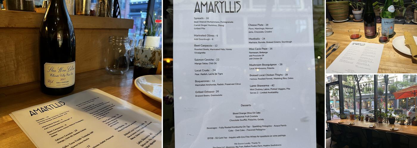 Amaryllis doesn’t get the attention it deserves. Everything is delicious and interesting. And since Covid is still around, being able to take out is good.