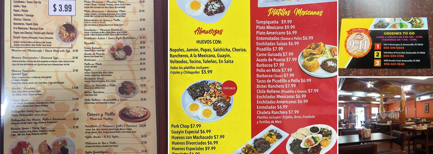 9-11-Cafe is a popular spot for affordable breakfast and lunch. Customers praise the generous portions, with one couple spending $20 for two lunch plates. The waitstaff is friendly, adding to the positive experience. The restaurant downtown is preferred over the other location. Visitors appreciate the quick service and ample food, with a group of three spending $28. The chilaquiles are particularly recommended, served in a calm and pleasant atmosphere perfect for a family breakfast. The authentic sauce is also highlighted as a standout feature.