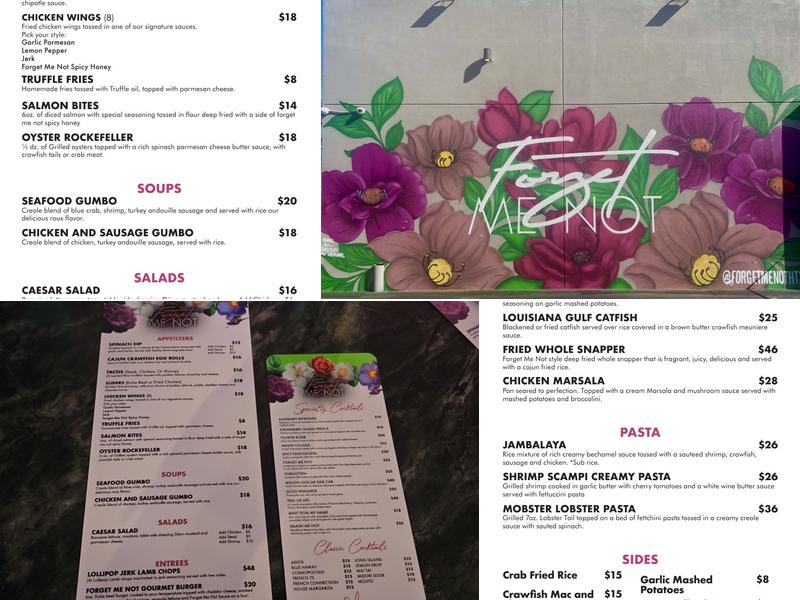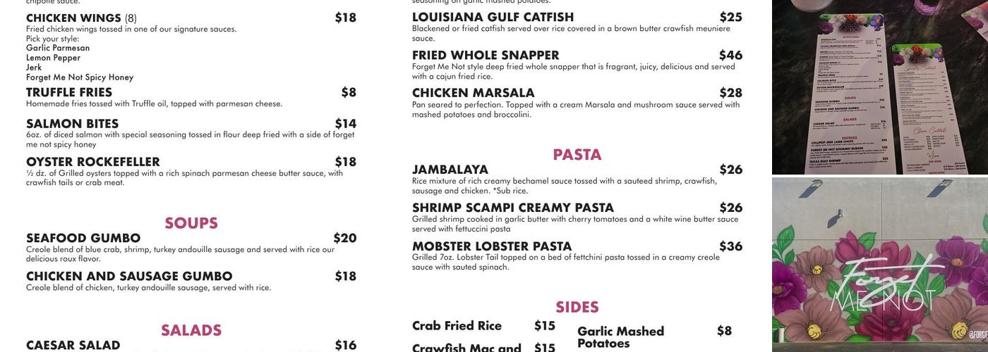 Forget Me Not offers top-tier food, amazing drinks, and a great club atmosphere. The staff provide good vibes and excellent service. Guests can enjoy the delicious food and day party vibes. The food is of high quality, with standout dishes like the waffle and chicken, lamb chop meal, and catfish and grits. The service is super fast, and the atmosphere is very pleasant. The music can get loud, but the overall vibe is great. The parking crew charges a fee, which was noted to be $11.83, so it's important to be aware of this when visiting. Gratuity is also included in the receipt, at 18%, and is good to know ahead of time. The restaurant is well-decorated, offering a fun and enjoyable dining experience. The hostess could be friendlier, and the waitresses are fine, with a few minor improvements needed, such as providing more sauce for meals. Overall, a good spot for a fun dining experience, especially with opportunities for free shots and a unique atmosphere.