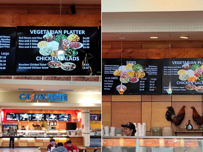 Big Easy Cajun is an awesome and extremely affordable place that serves the best bourbon chicken in town. The staff is super friendly, and the owner is outgoing and engaging. With the best vibes ever, the owner offers numerous samples and explains why their food is the best. The spicy bourbon chicken, spicy blackened chicken, jambalaya rice, and steamed cabbage are must-tries, making it the best place for some southern comfort food at Mayfair. The food is really good, with the bourbon chicken being a favorite among many. The restaurant is located inside the mall, which has enough parking.