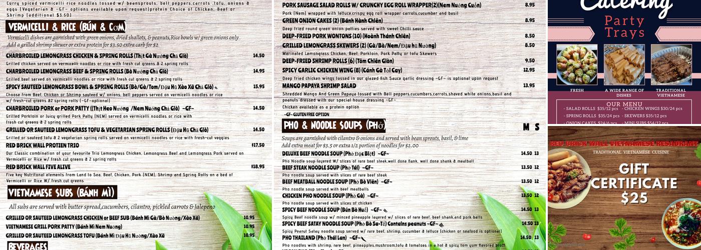 The Red Brick Wall offers a delightful Vietnamese dining experience with fresh and delicious food. Customers often praise the authentic pho, tasty cigar-shaped pork spring rolls, and the highly recommended green onion cake. The restaurant provides good portion sizes and reasonable prices, with friendly and attentive service. The owner ensures excellent customer service and addresses any concerns promptly. The genuine hospitality and consistently praised food make The Red Brick Wall a reliable choice for authentic Vietnamese cuisine. Recent reviews highlight the outstanding catering service, the popularity of dishes like mango salad, spring rolls, pad thai, and skewers, as well as the gluten-free options and the nostalgic feel of the vermicelli bowls.