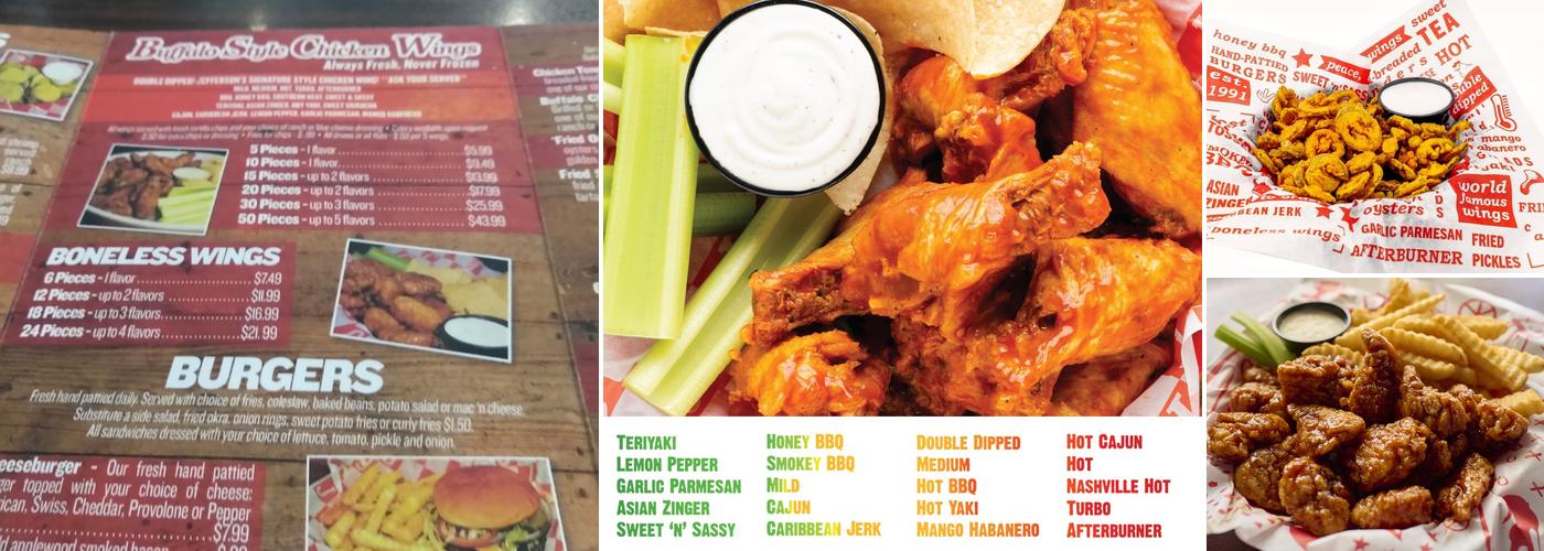out if all the places I have had wings, and alot of these places I am speaking of were not Wing places but had wings on their menu, ALL had better wings than Jeffersons Wings. Here @ Jeffersons you get the most slimy skined wings of anywhere else., Even when you order them XXX crispy. maybe the cooks aren't educated in reading. if they aren't going to fix them like you ask them to the why take our order, just bring out what ever slimy half cooked slime wings. obviously they...read full review
