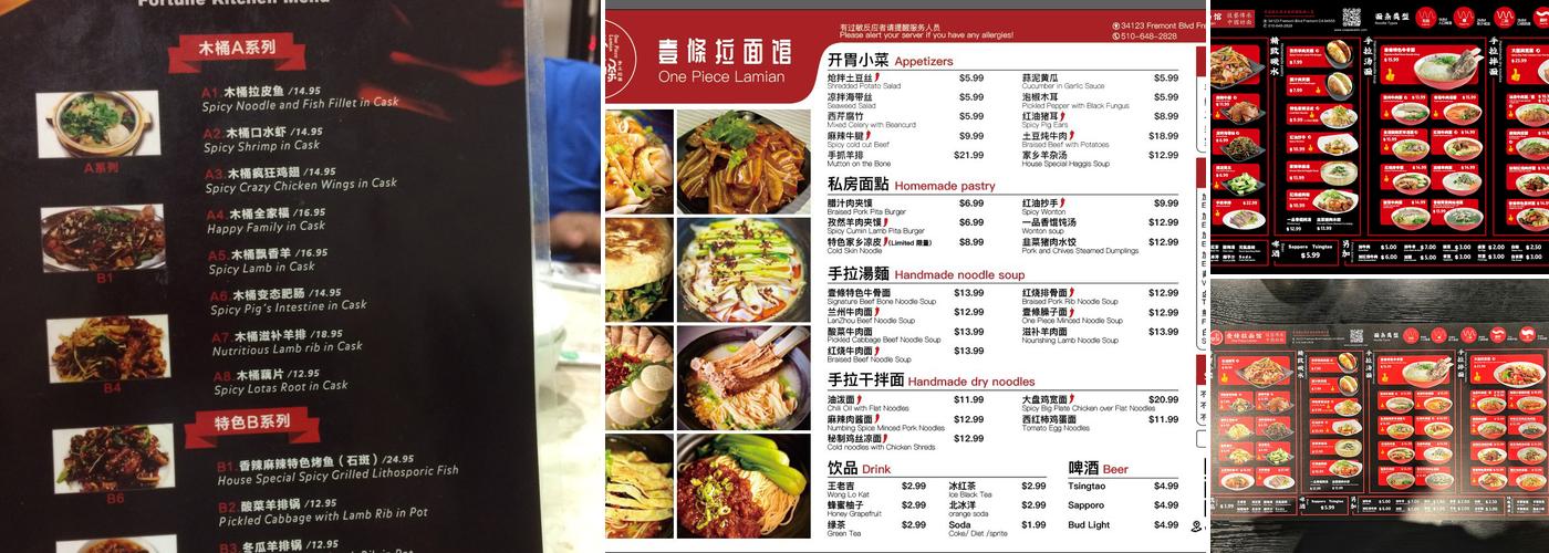 One Piece Lamian is a restaurant serving authentic Chinese noodles. Diners praise the fast service and kind waiters. The food is described as top notch with great taste and generous portions. The menu features a variety of noodles, rice dishes, and appetizers. Popular choices include minced pork, braised pork belly, and chili oil noodles.