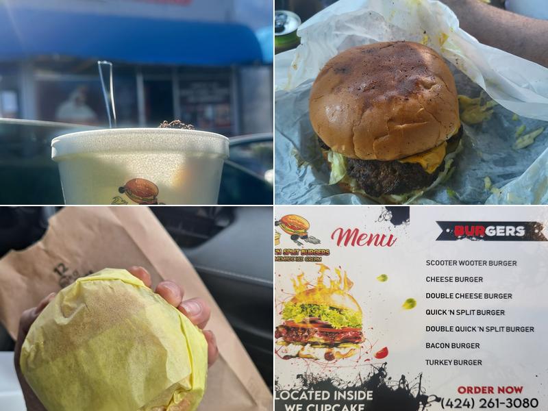 Quick N Split is a versatile restaurant that offers both sweet and savory dishes. The food is delicious and worth trying, especially their popular smash burger and tacos which many customers say taste homemade. The restaurant also features a special for $20 that includes food, drink, cupcakes, and ice cream. The homemade ice cream is highly praised for being rich and creamy, reminiscent of old-school recipes, though some customers have noted that ingredients may have changed over time. The staff includes friendly individuals, with one young lady taking orders recently making a positive impression.