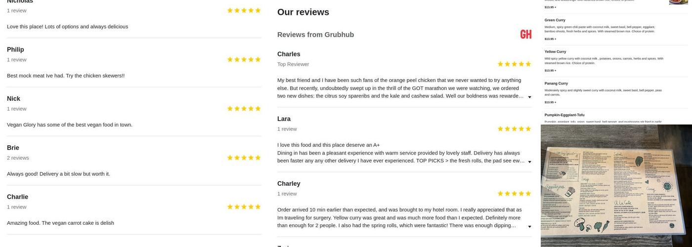 Vegan Glory is a popular restaurant in LA known for its delicious vegan cuisine. With a 20-year history, it has a fresh new look and offers excellent service. The menu includes dishes like the yellow curry noodle, and the atmosphere is friendly and welcoming. Staff members such as Fluke and Nat provide genuine and efficient service. Customers frequently praise the variety of tasty combinations, noting that everything is fresh, perfectly cooked, and excellent, despite being vegan or vegetarian. The place has a good vibe, and the food is often described as flavorful and satisfying. Popular dishes like the Peppered Steak sandwich and Chicken Wrap Cowboy Sauce receive high praise for their freshness and taste. The Orange Peel Chicken is also a favorite, with generous portions served alongside rice and Thai Iced Tea. While desserts like Carrot Cake may sometimes disappoint, the overall experience at Vegan Glory is highly recommended and worth returning for.