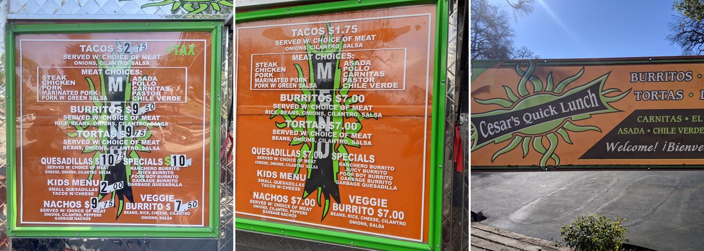 Caesar's Quick Lunch is a restaurant known for its friendly and kind staff. Their tacos, particularly the chicken tacos with extra green sauce, are highly praised for their meatiness, moisture, and explosion of flavors. The Chile Verde burrito is another popular choice, known for its delicious taste. The restaurant also offers a mouth-watering ceviche and al pastor on a vertical split. Whether from their truck or their storefront, Caesar's Quick Lunch has been fueling work summers for many with their delightful meals.