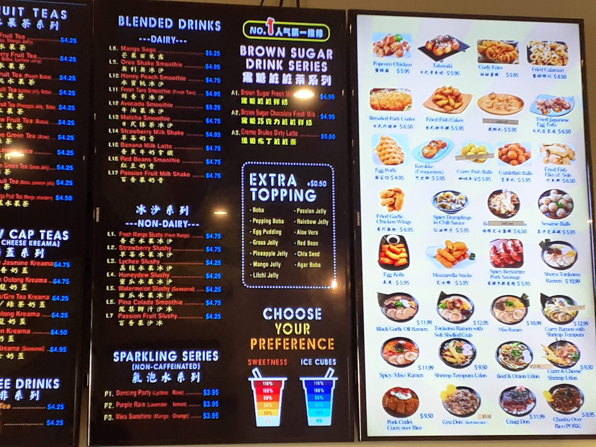 So far, it's a good boba place to hang out. There are tons of flavors. You can choose from popping boba, aloe vera, grass jelly, cheese foam, and crystal pearls. My favorite combo lately has been brown sugar boba with oat milk and crème brûlée foam and kumquat Lemon green tea. Support local restaurant