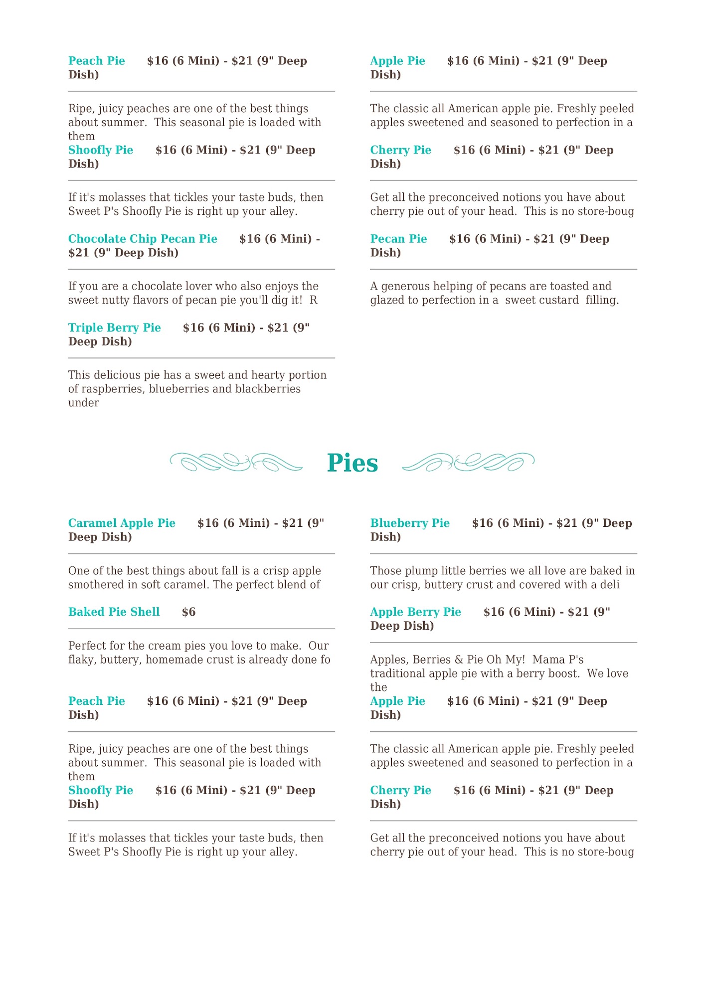 Amazing pies! These tastes like a mini version of yummy "Apple Hills Pies". We served these delicious pies at our daughters wedding this past June. Everyone loved them and it was a nice alternative to an expensive wedding cake. The Triple Berry Pies went first, but the apple and pecan were just as good. I kept some in my freezer for later !!! I plan to order these again, plus the "to die for" homemade caramels!!