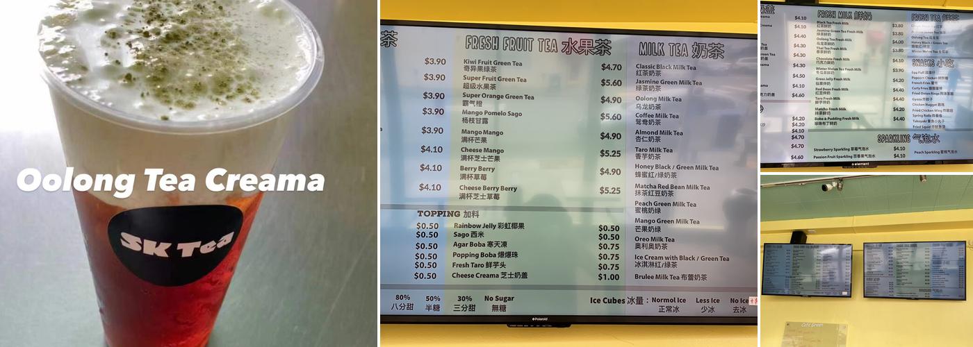 SK TEA is a charming boba tea shop with affordable prices and a cute Ghibli-inspired interior. They offer a variety of drinks, from classic milk tea to unique flavors like mango green tea crema. The boba has a perfect chewy texture, and toppings such as lychee jelly, aloe, grass jelly, and agar boba are available. Customers appreciate the good boba and reasonable prices, often noting the quick service. Some find the mango green tea crema overly sweet and the cheese foam texture unappealing, but overall, the quality is considered average or better. The shop is a great choice for those seeking tasty drinks at a low cost, with prices around $6 to $9 for a drink, making it a popular spot for quick visits and takeout.