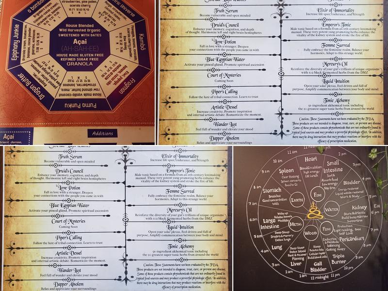 The cafe uses all organic, real ingredients and puts thought into every bowl, drink, and tea they create. Customers can enjoy an amazing "sacred environment" with hammock seating, semi-private rooms, perfected lighting, and beautiful artwork. The owner and staff are friendly and knowledgeable, and the ambient music adds to the overall experience. Visitors can even take dance lessons outside the cafe.