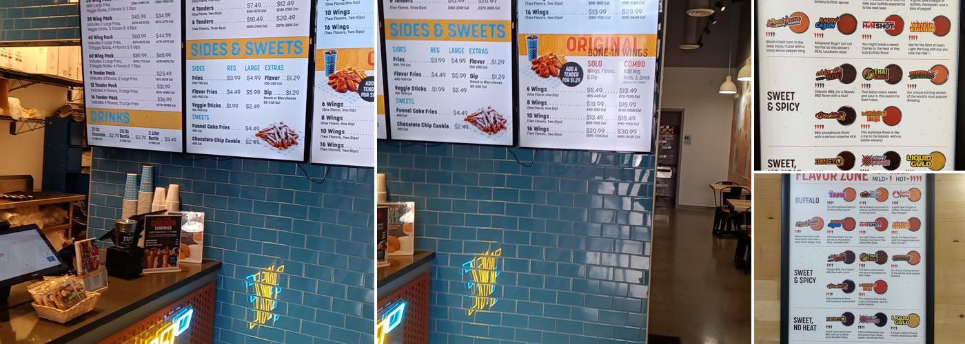 Wing Zone offers excellent food with generous portions, consistently delivering fresh and hot meals. The restaurant is known for its delicious chicken tenders, marinated in a 12-hour brine. The atmosphere is modern and clean, and the staff is friendly, helpful, and enthusiastic, providing exceptional service. Customers recommend it as a great spot for wings and chicken lovers, highlighting the best fries and wings in town, particularly the Garlic Parm and Buffalo flavors. They also enjoy the clean indoor dining and the attentive employees. The owner and staff are recognized for their graciousness, making a great first impression. Many guests have enjoyed the Nashville Hot chx sandwich, and the unique spicy peach and Tai chili sauces on wings have received positive mentions. Overall, the dining experience is enjoyable, with great portions and budget-friendly prices, making it a place worth visiting again.