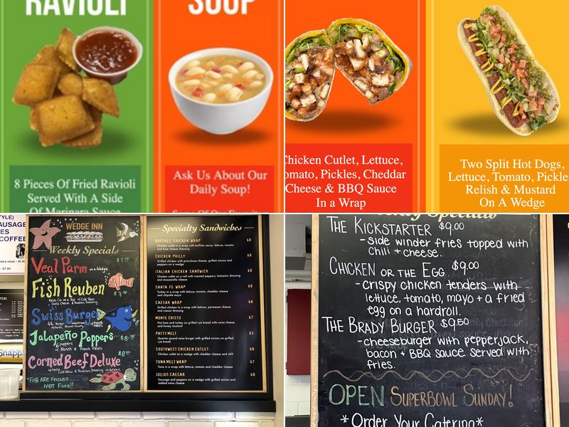 Wedge Inn is a popular lunch spot known for its delicious deli offerings. The restaurant serves tasty meals like the trex hamburger/burrito and breakfast burrito, which have received great reviews from customers. While some people think the portion sizes of sandwiches and wedges might be on the smaller side, the overall taste is highly praised. The neighborhood place is perfect for a quick breakfast or lunch, with favorites like bacon, egg, and cheese in the morning and wraps or salads for lunch. It can get really busy, so ordering ahead is recommended. Wedge Inn is also recognized for its vegetarian options, kid-friendly sizes, and commitment to responding to dietary restrictions. The restaurant has an efficient online ordering process and is wheelchair accessible with an easy walkway.