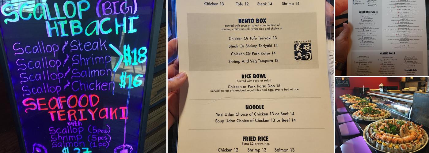 Umai Cafe offers a pleasant dining experience with attentive wait staff and is known for having the freshest fish and expert sushi chefs. The menu features delicious options like chicken fried rice, 601 sushi, and 5-piece sushi, all praised by customers as the best sushi in town. The sushi rolls may be basic, but the thick cuts allow for a focus on the fresh fish. Guests also enjoy the Spicy Girl Roll, Spicy Tuna Roll, and Philadelphia Roll, along with decent options like seafood kimchi soup and ginger salad. Everything is full of flavor, making it great for lunch or evening gatherings with friends. The sushi presentation is often praised for its appearance and freshness, which exceeds expectations given the humble setting. While the food quality is consistently high, some customers note that the front of the house can have bad energy and lack attentiveness, which can affect the overall vibe. Besides sushi, the restaurant offers a variety of entrees, including Hibachi combos and delicious soups. Umai Cafe is especially popular for special occasions like Christmas Eve, where large sushi platters and the 7 fishes tradition are enjoyed year after year. Overall, Umai Cafe serves high-quality Japanese cuisine with excellent service and plenty of choices that never disappoint.