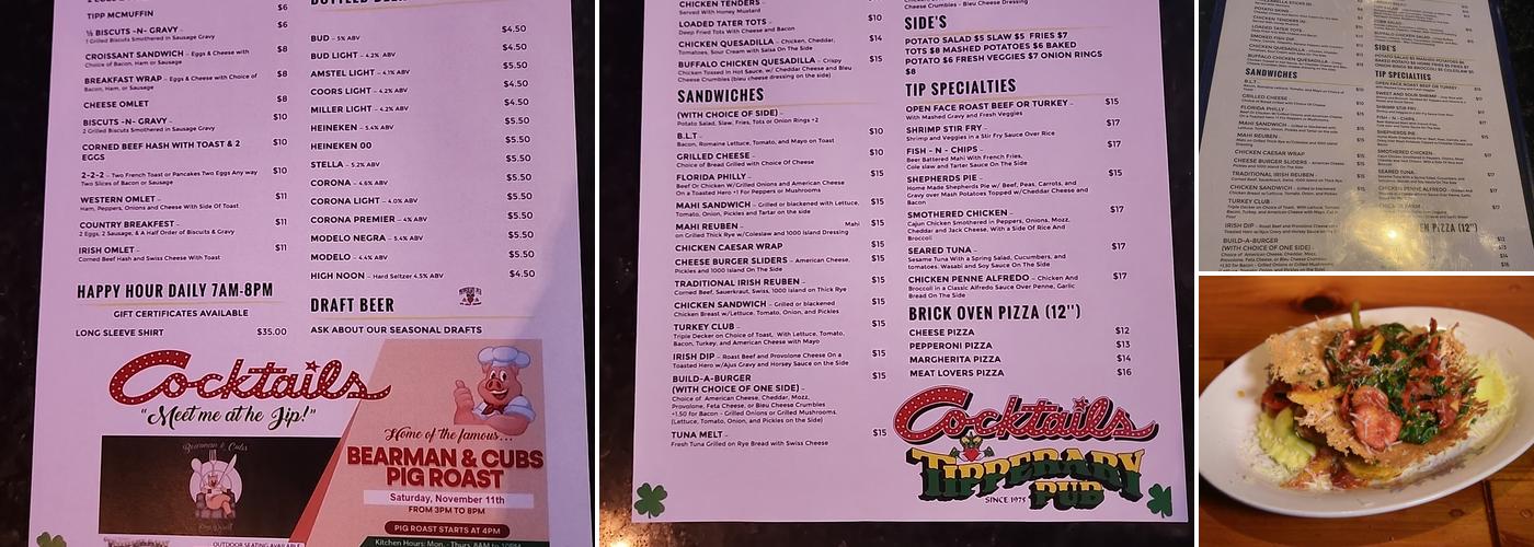 Tipperary Pub is a cozy spot with a lively atmosphere, thanks to its friendly customers and excellent staff. The food is outstanding, with delicious options like the thin crust, pepperoni pizza. The pub has a classic Irish feel, with a warm and welcoming atmosphere. With reasonable prices and great service, it's a wonderful place to grab a drink and enjoy some table shuffleboard, bollards, or darts. The pub has been a staple for many, making it a place where friends gather, and it is clear that the owners have a deep love for their customers and the community.