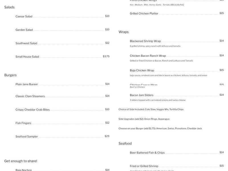 Finns is a great stop for bikers! We did a run yesterday and Finns was our stop to eat. Great food (Shrimp Cesar Salad) EXCELLENT!! Excellent service! Thank you!