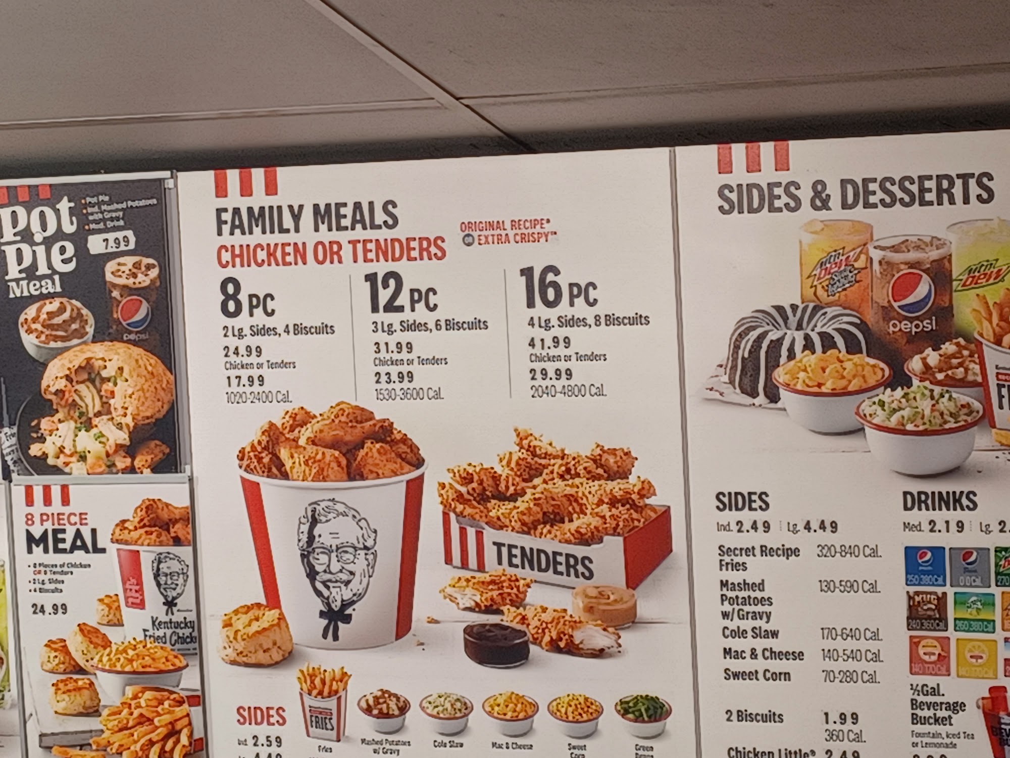 16 pieces of our freshly prepared chicken, available in Original Recipe or Extra Crispy, 8 biscuits, and 4 large sides of your choice.