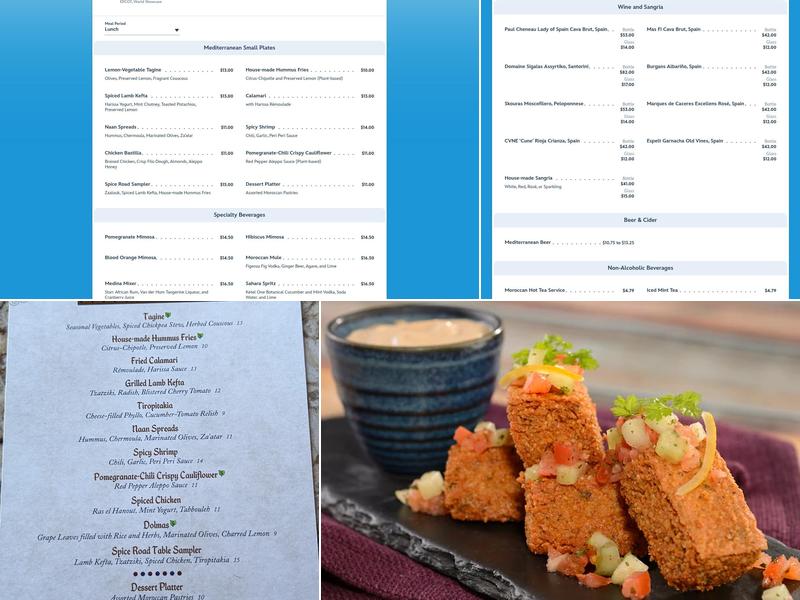 Spice Road Table, located in the Morocco pavilion of Epcot, offers a unique dining experience with a focus on appetizers, small desserts, cocktails, and teas. The menu features around 10 small plates, with half being plant-based options, making it an excellent choice for vegetarians. The Spice Road Table sampler is a popular choice, featuring a variety of flavors and hefty portions. Other notable dishes include the naan spreads, dolmas, lamb, and chermoula. The restaurant provides a refreshing atmosphere with outdoor seating, a full bar, and incredible views of the World Showcase Lagoon. Visitors often enjoy the beautiful lake view from their tables, especially at night when fireworks light up the sky, creating a magical setting. The food has a fresh Mediterranean twist, with vibrant flavors and beautifully presented small plates—perfect for sharing. Everything tried has been described as delicious, with Moroccan food praised for its full flavor and attractive presentation. The service is warm, friendly, and attentive, with staff going out of their way to make the experience special, offering great food recommendations and encouraging guests to relax and enjoy the view. The restaurant gets busy, so reservations are highly recommended to avoid disappointment. Prices are reasonable, with most items around $15, and the wide drink selection, including refreshing mint tea, adds to the overall enjoyment. If seeking a relaxing meal with a view and a different experience from typical park fare, Spice Road Table is a must-visit at Epcot.
