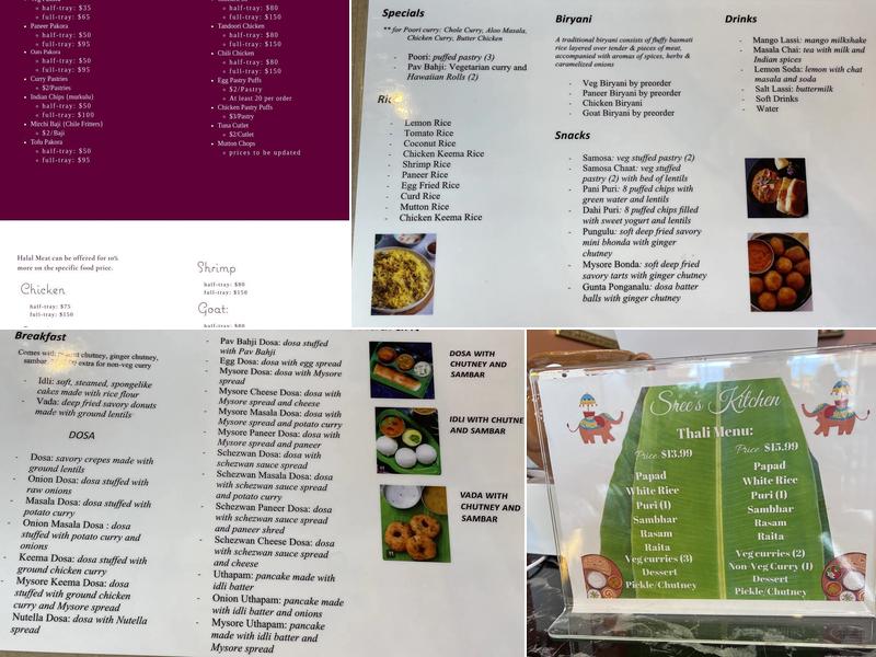 Sree's Kitchen offers authentic South Indian home-cooked meals, featuring a variety of options such as the delicious vegetarian thali with poori, sambar, rasam, and more. The menu includes many South and North Indian specialties like Chicken Biryani, Chicken 65, pav bhaji, and goat biryani, which has been praised for being fresh, balanced, and large enough for three meals. Customers have described the food as flavorful, authentic, and gentle on the stomach, with dishes like mysore bonda, chicken curry poori, and non-veg thali. The chicken in the dishes is tender and comes right off the bone, and the dosa is crispy and sour, as it should be. The restaurant is known for its nice atmosphere, colorful decorations, and Indian music videos, creating a friendly environment to enjoy meals. Visitors have enjoyed the tasty food, the pleasant smell of spices, and the attentive staff. The place is clean and inviting, making it a great spot for a satisfying meal. Recent reviews highlight the deliciousness of dishes like masala dosa, the well-balanced goat biryani, and flavorful options such as Samosa Chaat and Butter Chicken Masala. Many find Sree's Kitchen to be one of the best restaurants in Pensacola and recommend it highly.