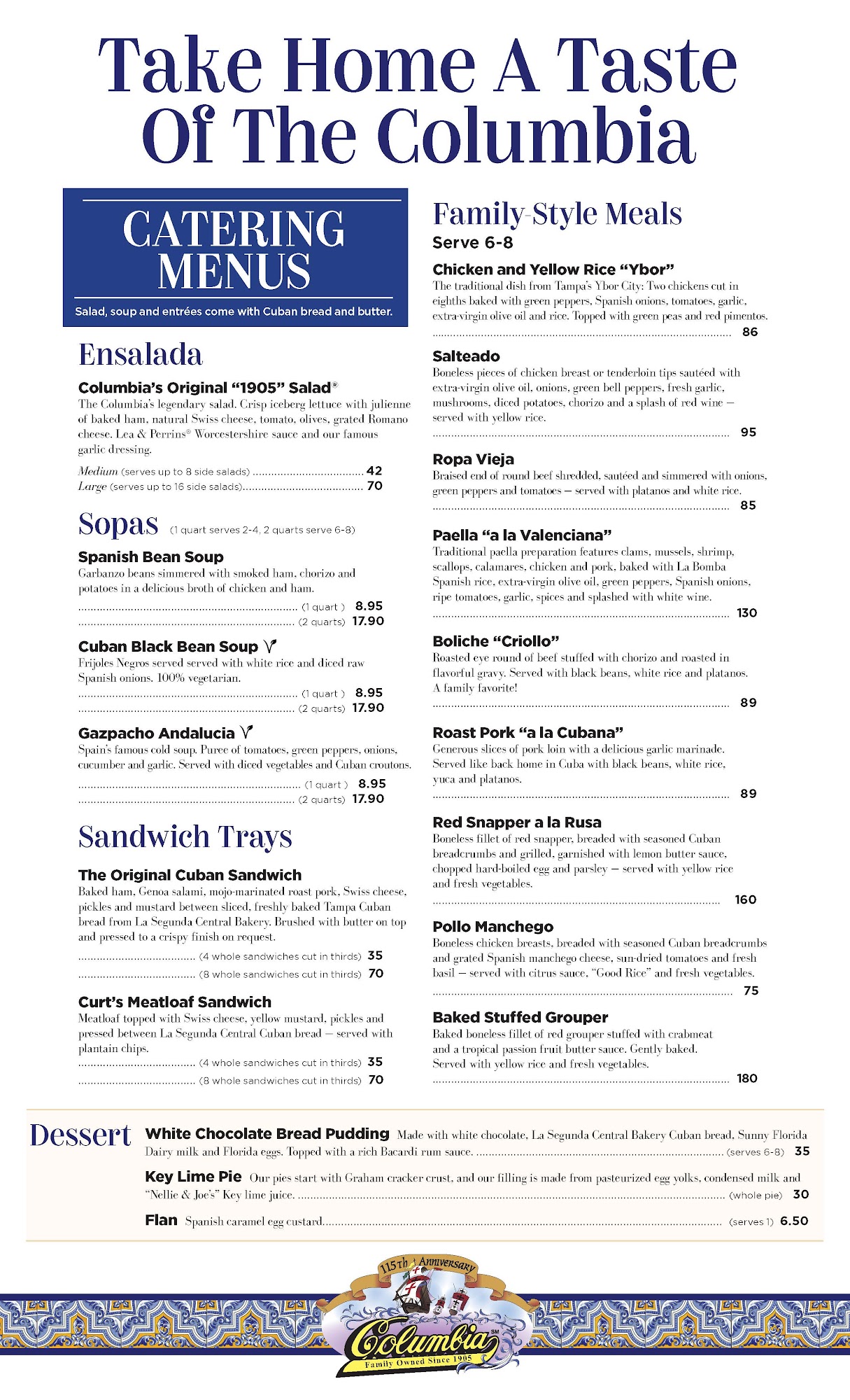 Perfection! Wonderful atmosphere, great service, delicious grouper Jimmy! Loved the bean soup, the bread was terrific too! Flan for dessert made for a tasty ending of a memorable meal!