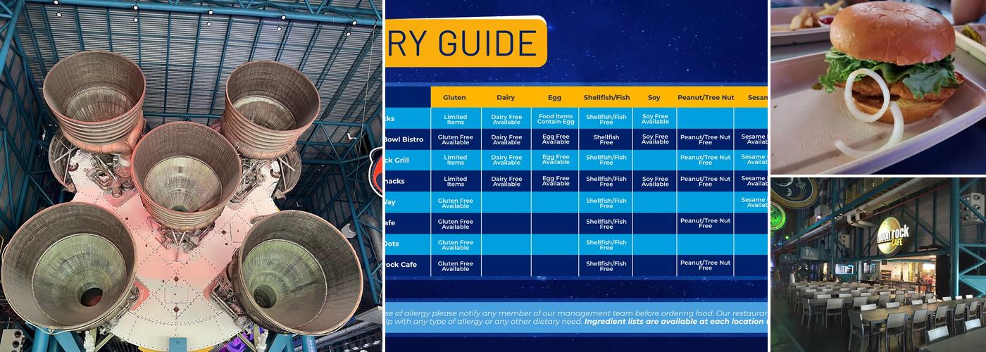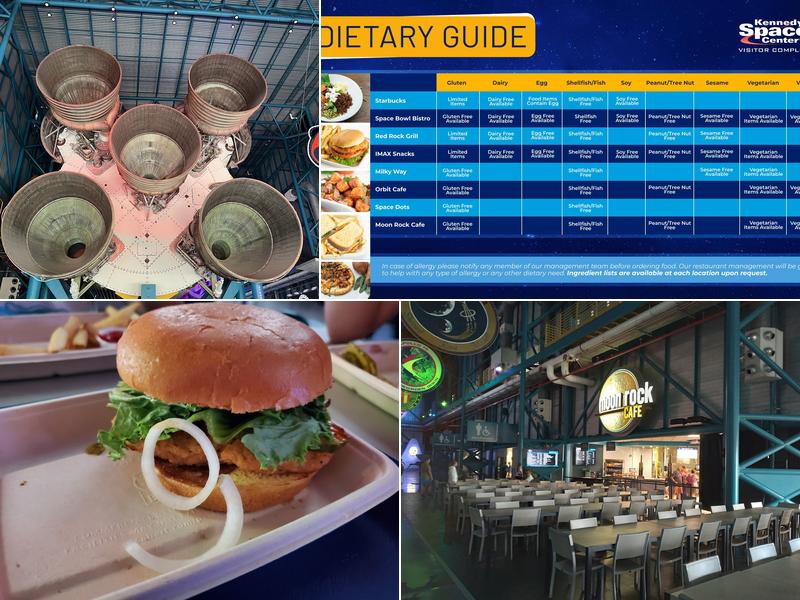 The Moon Rock Cafe offers a unique dining experience with its rocket-themed decor and views of the Saturn V rocket. The cafe serves comforting American cuisine at affordable prices, including popular items like burgers, pizza, and the Quesadilla for kids. There are also grab-and-go meals, chicken tenders, fries, and sandwiches available, with free refills. The food quality is generally good, with burgers that come with one or two patties, perfectly cooked and less greasy than fast food. Vegan options like the vegan burger are prepared separately upon request. However, the fries can be soggy, and some customers note that the taste and quality can be sub-par. An allergy menu is available, but there is no option to make notes on orders, which could be a concern for those with serious allergies. Despite these issues, the atmosphere is out of this world, with plenty of seating inside and outside the exhibit. It’s a perfect way to complement a visit to the Kennedy Space Center.