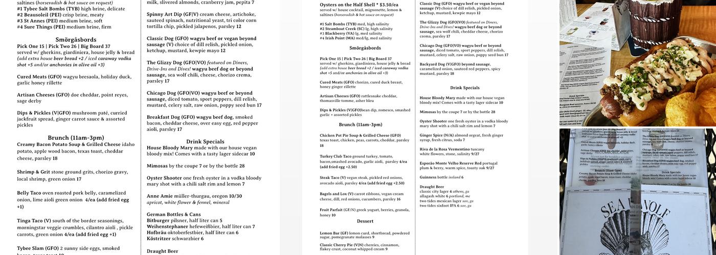 Sea Wolf Tybee offers a unique dining experience with its delightful southern fare and vegan alternatives. The pickled charustic and creative cocktails are standouts, while the "glizzy dog" and other dishes defy expectations. The cozy, lively atmosphere complements the friendly staff and overall exceptional experience. It is a fun place with a great staff and a casual atmosphere, perfect to hang out with friends. One of the favorites is for raw oysters, drinks, and appetizers. The food is good, with tasty Cesar salad and good hot dogs, including a generous vegan hot dog. An amazing floral cocktail can be paired with oysters. The outdoor patio is a fun and relaxed environment, perfect for groups. The location's charming ambiance and attentive staff make Sea Wolf Tybee a great spot for a memorable meal.