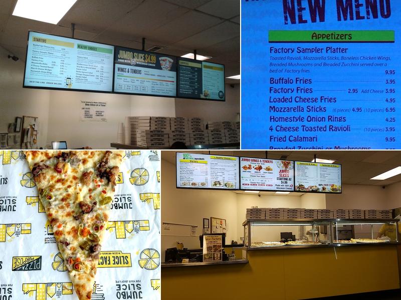 The Slice Factory offers a decent pizza selection, with the cheese pizza being particularly well-received. The restaurant also serves tasty Buffalo boneless wings and fries. However, some customers have noted issues with the cleanliness of the soda machine and the limited parking availability. Overall, the Slice Factory provides a generally positive dining experience, with friendly staff and a clean environment.