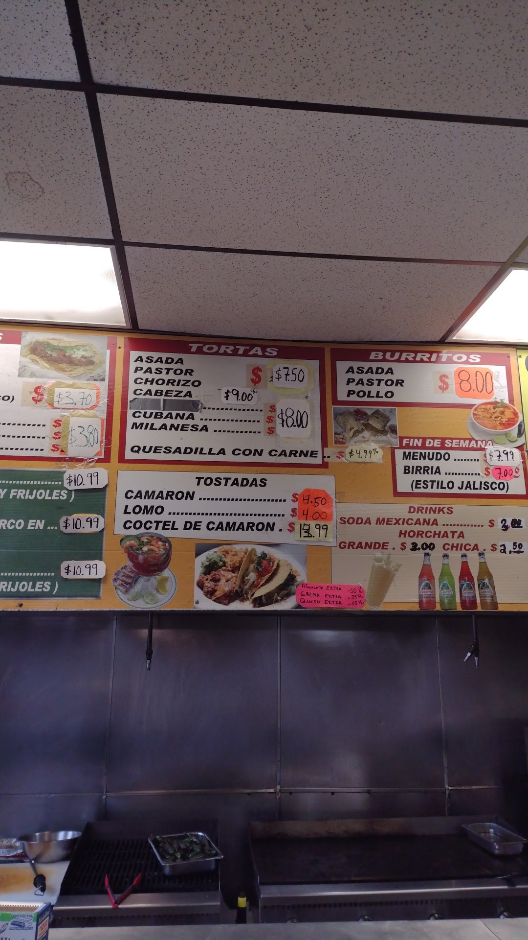 Friendly establishment. Tacos are 4.25 each. The tacos we ordered were of al pastor. The Al pastor meat was on the bland side. They were very generous on the meat filling.Tortillas were just heated on the grill they were dry a little oil would make the tacos taste 100% better.