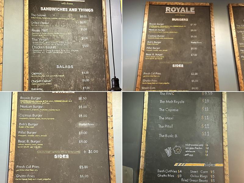 Royals is an affordable restaurant known for serving great food in a pleasant atmosphere. Their menu includes a delicious Royale with Cheese Smash Burger, which is mustard-crusted and tastes like a classic juicy cheeseburger. Popular choices also include the bourbon onion rings and elote. Customers have praised the size and flavor of the meals, such as the caprese burger and the Colonel chicken sandwich, which is noted for being huge and a great value. With plenty of seating options, including patio seating, Royals is a solid neighborhood joint suitable for groups of all sizes. Prices remain mid-range, with burgers averaging around $9.50-12, and sides and drinks available à la carte. The restaurant is often busy, adding to its lively atmosphere, and the friendly staff enhances the dining experience.