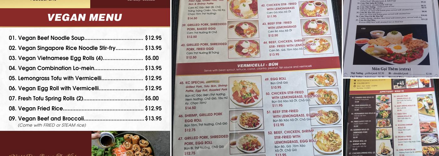 Pho KC in Wichita, KS offers a good bowl of Pho with an awesome, healthy, and great-tasting food. The broth is really good, and the customer service and atmosphere are cool too. The restaurant is very clean, and the prices are decent for the quality of the food. While not the best Pho in the area, it's a solid choice for those craving a Vietnamese meal. Regular customers enjoy their favorite dishes like Pho Tom and dumplings, and appreciate the friendly staff. The menu has been updated recently, offering a variety of tasty options. The atmosphere can be lively, with some background music and sounds from the kitchen, but the overall experience remains enjoyable. The restaurant is a popular spot for those who want a satisfying Vietnamese meal in a clean and welcoming environment.