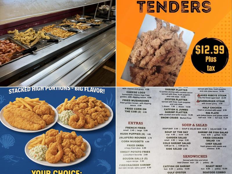 Bourne's Seafood Buffet offers a variety of dishes, with highlights being the crawfish, oysters, snow crab legs, and gumbo. The food generally impresses, with some exceptions. The friendly staff and great desserts make it a worthwhile dining experience. Customers appreciate the big portion sizes and excellent service. The restaurant is a nice place to meet up with friends and everyone is so friendly. Some dishes, like the loaded fries, may not meet expectations, but overall, Bourne's Seafood Buffet provides a good and tasty meal, making it a great spot to stop in and enjoy.