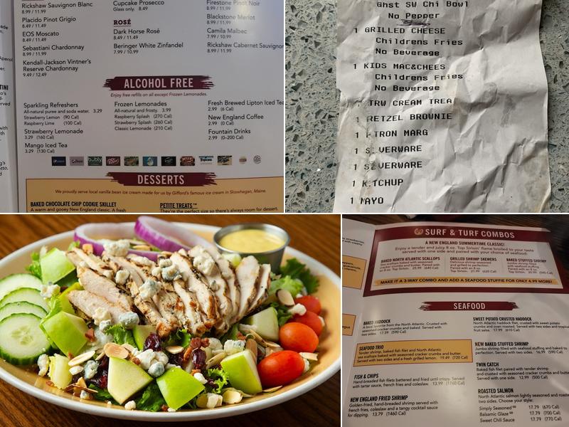 99 Restaurants is a welcoming and bustling spot with a nice atmosphere and good food. It's a great place to grab a drink and something to eat, with a variety of options available, including a couple of vegetarian choices. Parking is plentiful, and they offer curbside parking. The restaurant is wheelchair accessible and has coloring pages for kids. Pricing is average. During a recent visit, the crispy chicken honey mustard salad received positive reviews, while the baked Atlantic haddock and mashed potatoes received mixed feedback. The chicken sausage pasta was also noted as good. Service was described as good, with exceptional service from their waitstaff, particularly from Andy, who was praised for his relaxed demeanor and balanced check-ins. However, some customers have mentioned that the daytime bartender lacked personality and came across as rude. Cocktails were great and food tasted really good, with the loaded baked potato being a standout. The stuffed clam was delicious and tasted homemade, and the chowder was good. The chicken was juicy and soft, and the biscuit with cranberry sauce was a favorite. The atmosphere is generally perfect and calm, although some feel it hasn't changed in years. One customer reported their baked haddock was not cooked fully, and there is a desire for more protein options on the menu. Overall, 99 Restaurants continues to be a place where guests can enjoy a meal, but some hope for improvements in service and menu variety.