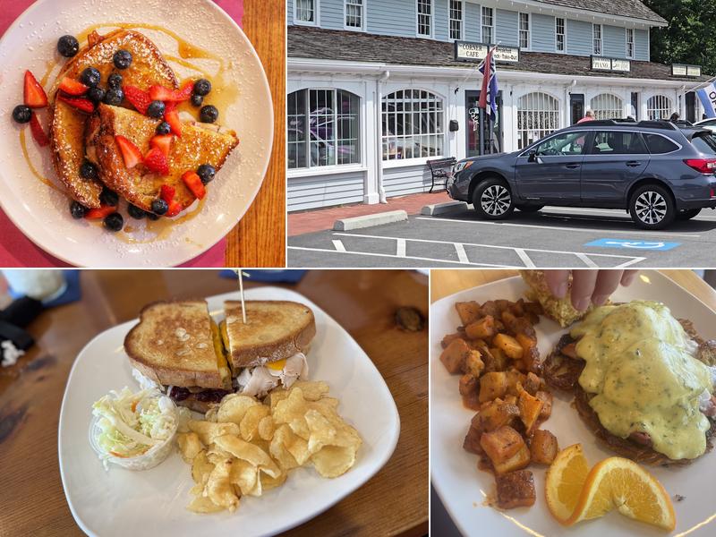 Corner Cafe offers a bright atmosphere with delicious blueberry pancakes and veggie omelettes. Known for their breakfast food, favorites include the Conquistador sandwich and carnitas burrito. The cafe provides cheerful service, generous portions, and tasty homemade meals like clam chowder and California eggs Benedict. Recent visitors highlight the amazing food, particularly the Turkey Gobbler Grilled Cheese, Huevos Rancheros, and cinnamon French toast, as well as the spicy and buffalo home fries. The staff is polite, attentive, and friendly, even during busy times, creating a calm and welcoming atmosphere. Morning cocktails, like the Pumpkin Spice Espresso Martini, are available to complement the dishes. However, due to reflective ceilings, the noise level can be high when the cafe is full, and the owner might consider adding acoustic panels to address this issue. The cafe also offers wheelchair accessible parking with two spaces in front and a curb cut on the sidewalk. This popular local breakfast spot continues to impress, making it a gem in Marshfield.