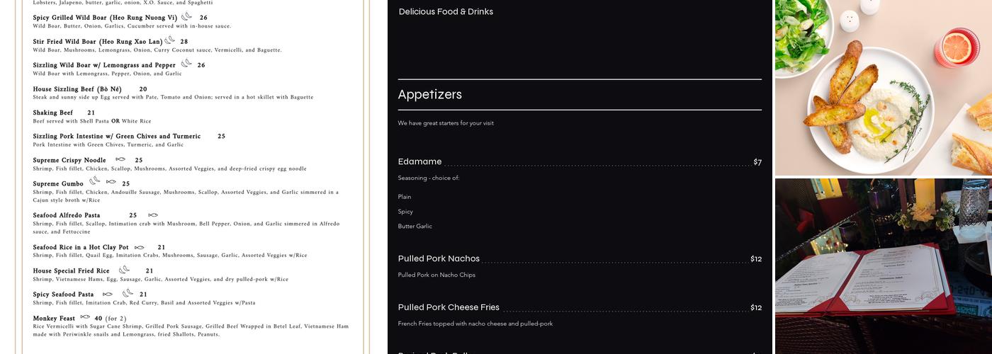 Monkey Lounge is a fun and entertaining restaurant with a warm and colorful interior. The music, karaoke, and DJ add to the lively atmosphere. The food is good, with standout dishes like the Shaking Beef and Sparkling Pear cocktail. The beautiful interior and comfy seating make it a great spot to eat and socialize. This newly opened hidden gem in Randolph, approximately 25 minutes from Boston, has a nice mystical vibe. Once you step into this thoughtfully designed space with comfort in mind, the ambiance and superior service transports you in a relaxing and fun state of mind. They offer half off appetizers DAILY between 4:30 pm - 6:30 (limited to 2 appetizers). They also host special events and live band music. As the clock strikes 8:30 PM on Wednesdays, Fridays, and Saturdays, the place becomes even more lively with karaoke! It was such a great sight seeing people of different ages and cultures come together for the love of music. Cheering and applauding each brave or tipsy performer like that of a fan boy and fan girl. Their food is ABSOLUTELY DELICIOUS! They offer Vietnamese dishes you'd normally see in pho restaurants but you will also find authentic Vietnamese plates that you have never seen offered. This place is a MUST VISIT - fun drinks, nice vibe, superior service, amazing food, and friendly diners.