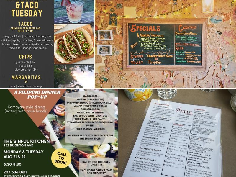 The Sinful Kitchen offers delicious food with big portions, including gluten free options that cater to various dietary needs. This cafe is always busy, which speaks to its outstanding reputation. The employees work diligently despite the limited size of the place and provide a wonderful experience for customers. It is recommended to make a reservation for larger parties, especially since space is limited with roughly 12 tables and 6 bar stools. The menu features unique dishes like crab/avocado benedict, lamb bacon, and lobster/fiddlehead benedict, along with breakfast classics such as omelets, French toast, and eggs Benedict. The corned beef hash is cooked crispy and has become a favorite for many. The gluten free strawberry waffles are incredibly yummy, and substitutions like BBQ jackfruit and tofu are available for those who prefer meat alternatives. The cinnamon roll waffle is also a popular choice. The cafe has a fun vibe, with drawing cutouts from customers on the wall and tables lined with paper for creative expression. The wheelchair accessible seating and bathroom are available, but there is no accessible entrance. The staff is praised for being friendly and attentive, contributing to a great overall dining experience. The Sinful Kitchen is conveniently located near the highway, making it a perfect stop for breakfast.