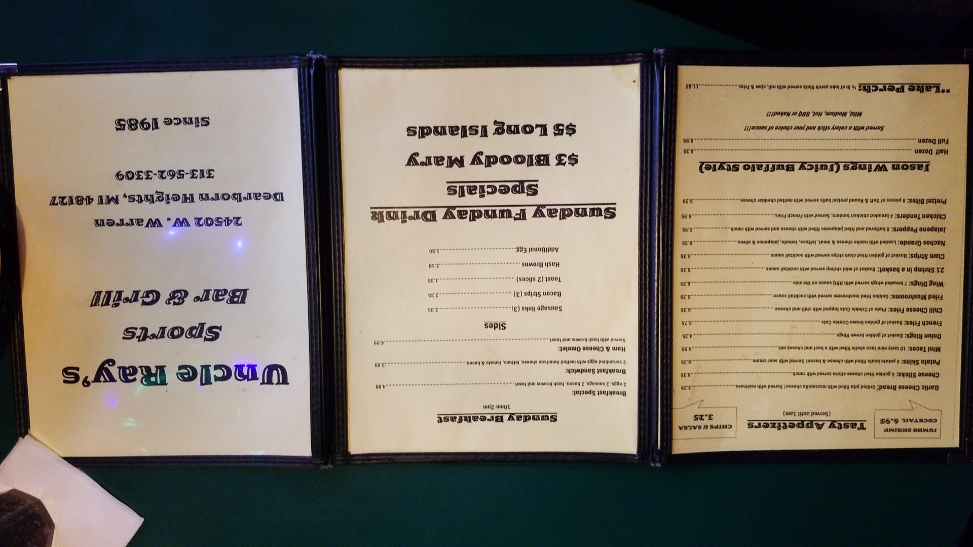 Great "local" establishment with great food. Went on a Friday for fish fry including cod, perch and jumbo shrimp. Salad was crispy and fresh too. Tv's for sports (Tigers, Lion's, Red Wings) great place if you like comfortable and great food and local) we will definitely be back often