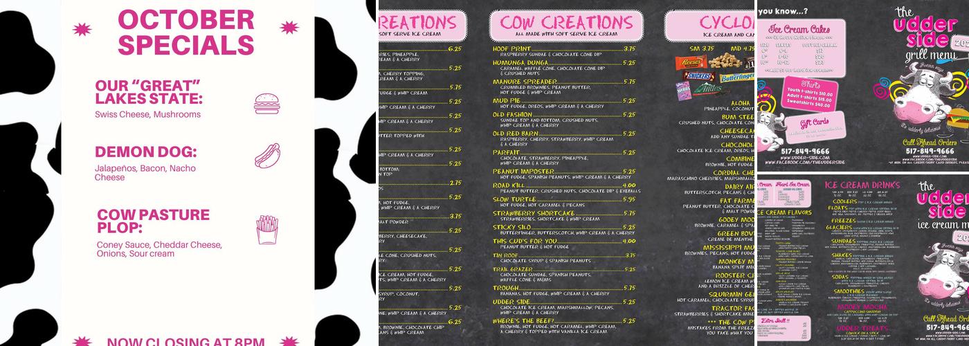 The Udder Side is a popular local favorite, offering a delightful array of ice cream flavors that rotate regularly. Their friendly staff provide efficient service, even during busy periods. The menu features classic favorites like the fried chicken sandwich and burger, as well as tasty options such as chili dogs and the mammoth dog with sausage, cheese, and grilled onions. Customers praise the reasonable prices and enjoyable atmosphere, making The Udder Side a preferred choice over fast-food alternatives in the area. Visitors also enjoy the great selection and cool combinations of hard ice cream, although there are no sugar-free options available. The Cow Tippin Fries and cheeseburgers are highly recommended, and many appreciate the quick service after sports tournaments, especially through the drive-thru. Parking can be limited with only a handful of spaces. Overall, The Udder Side remains a beloved local spot for ice cream and quick bites, especially for those looking for a tasty meal or treat in Jonesville.
