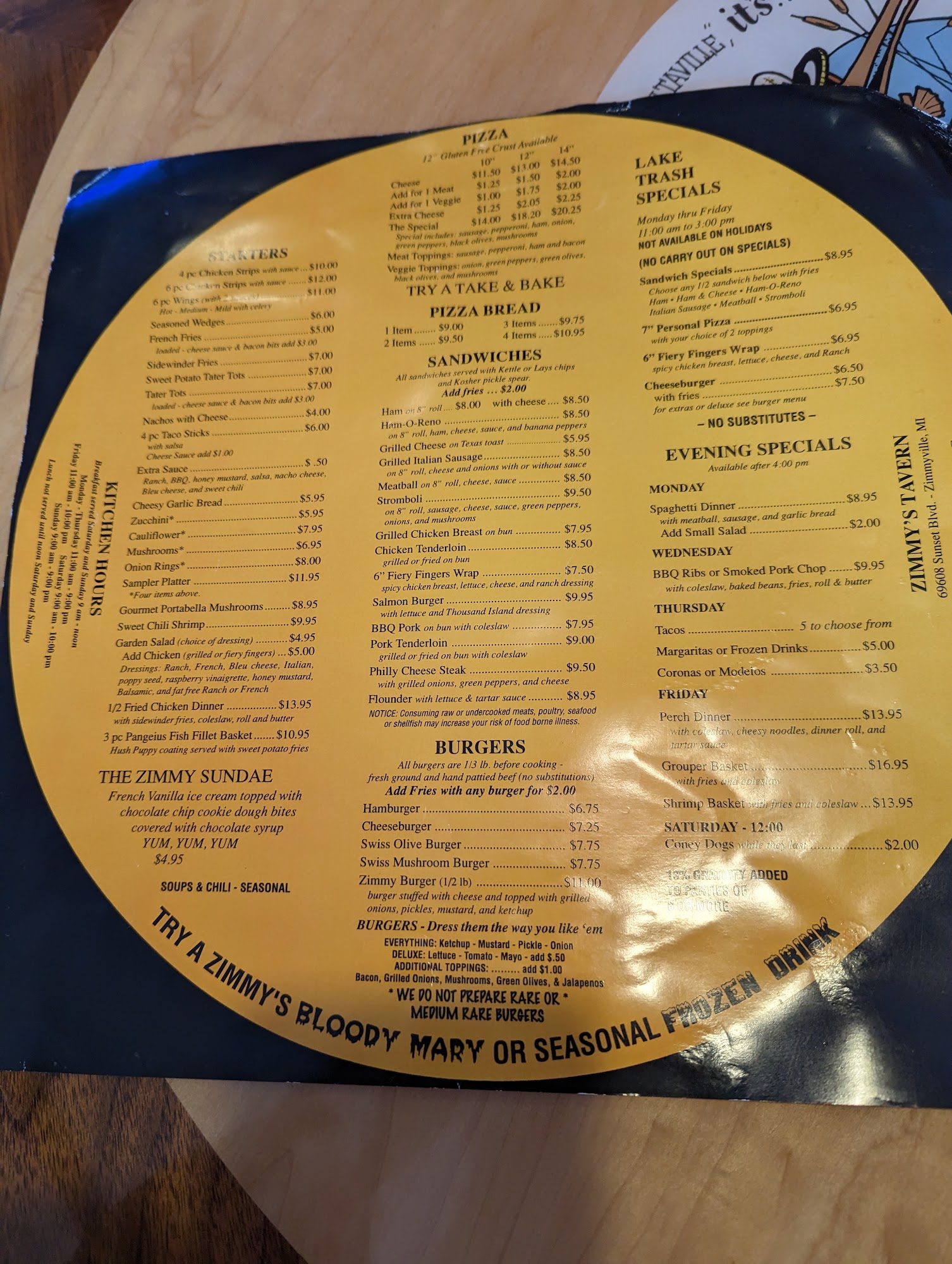 First time experiencing Zimmy's! Had a great time, loved the building, the atmosphere and the good people working there. The food was delicious and came out hot and fast. Order was exactly what we wanted and our waitress was a blast. We will definitely be going back. There are other items on the menu I need to try. Thanks for a great experience!
