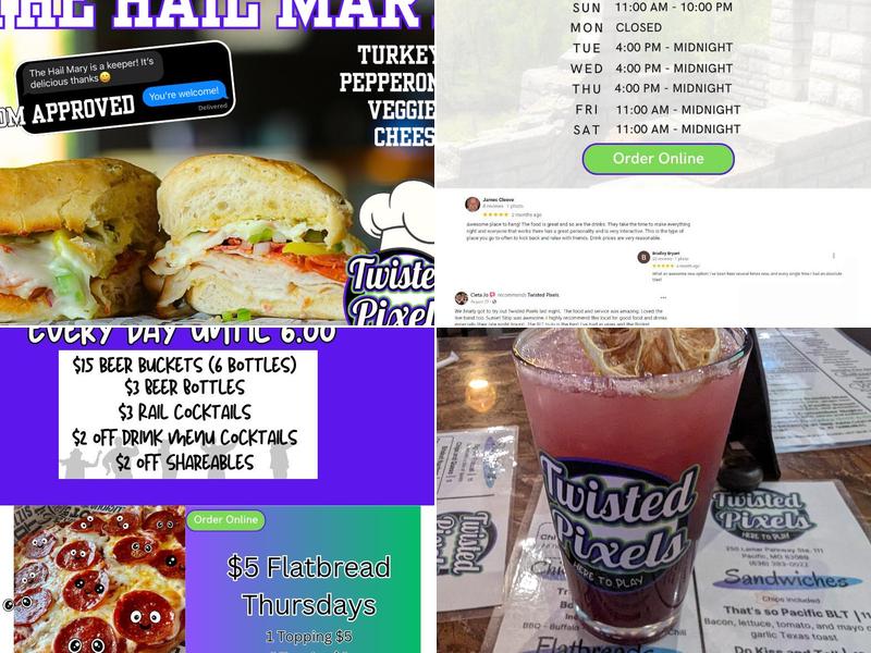 Twisted Pixels is a bar-style restaurant with a friendly staff and great service. They offer fun activities like pool tables and arcade games, creating a lively atmosphere. The menu features delicious options, though some dishes could benefit from minor improvements. The brisket nachos are tasty, but the plating could be enhanced. The brisket sandwich could use more sauce, while the buffalo chicken flatbread could be cooked a bit longer. The restaurant accommodates those with dietary restrictions, offering gluten-free choices. The staff is attentive and kind, creating a welcoming experience. Twisted Pixels is a great spot for tasty food, excellent drink specials, and an enjoyable time, making it a must-try for those in the Pacific MO area.