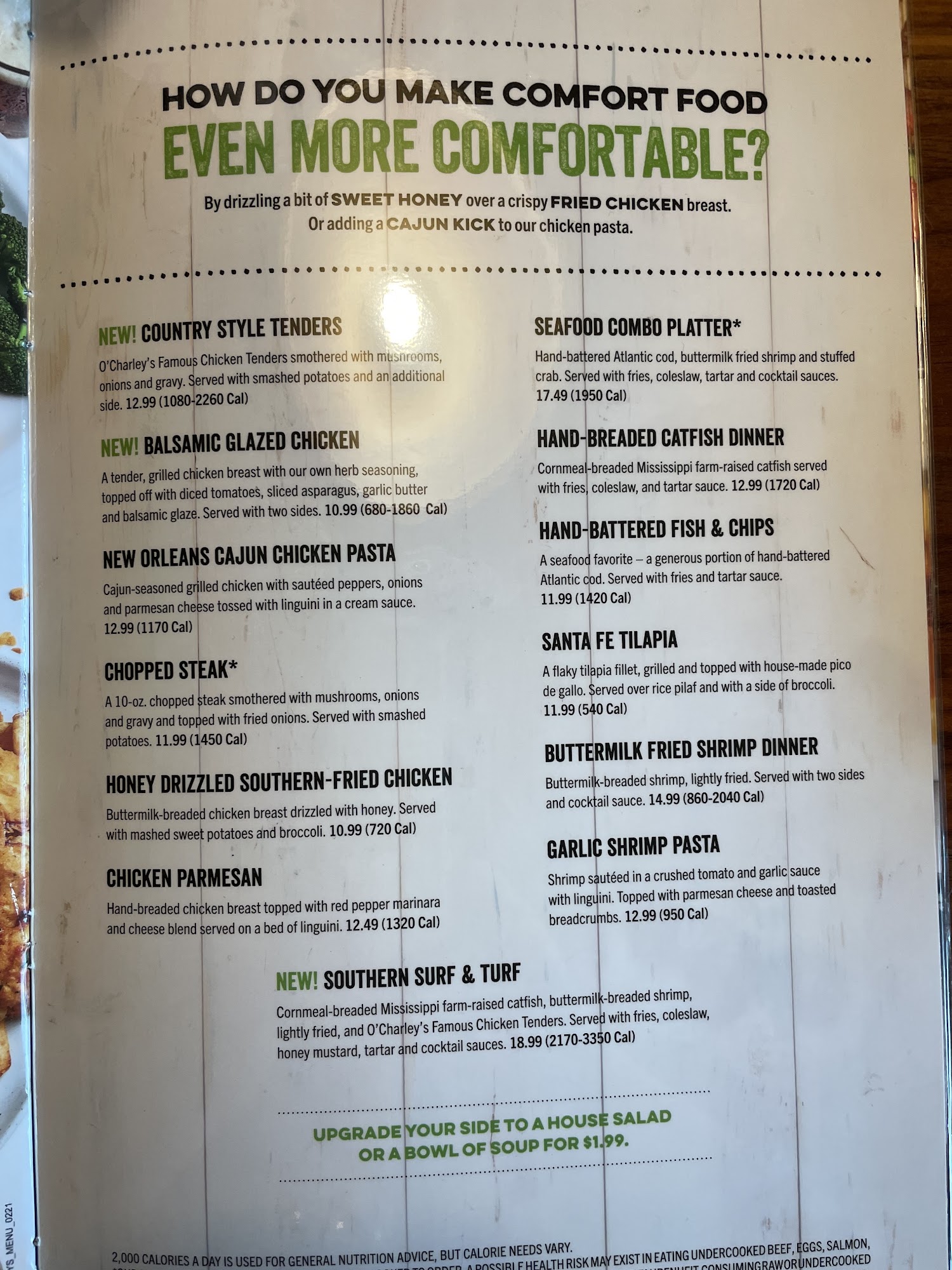 SUBSTITUTE CHICKEN WITH 6-OZ. SALMON FILET OR 6-OZ. SIRLOIN