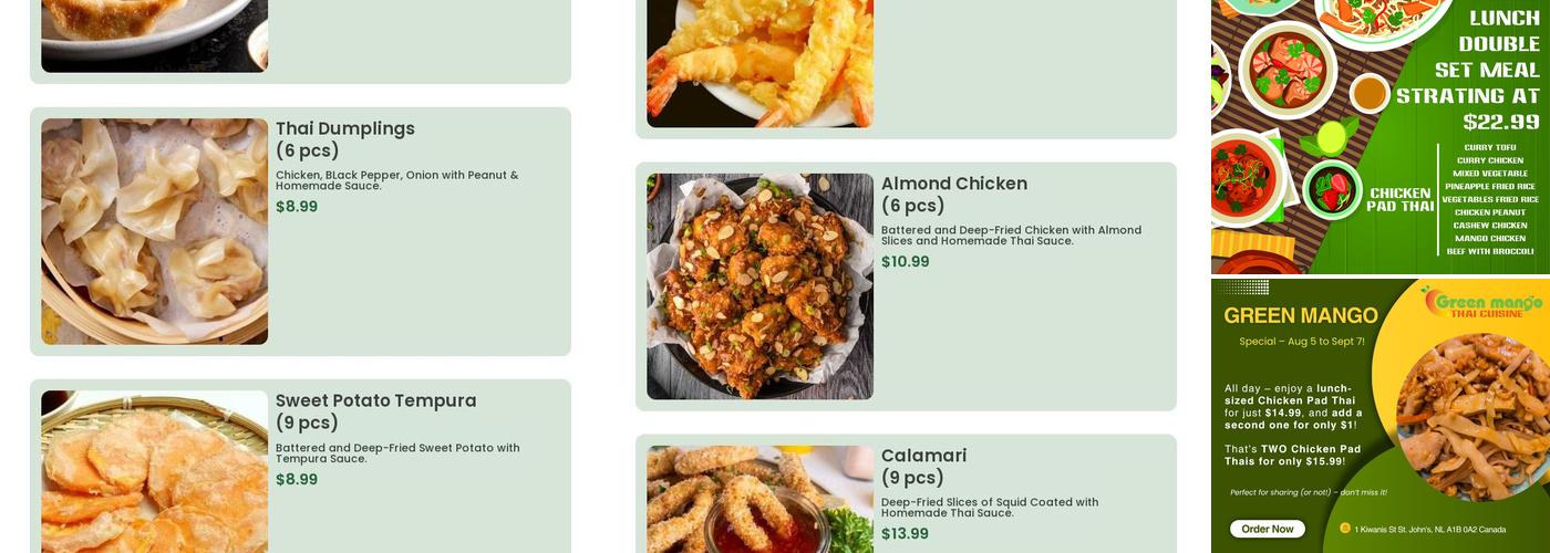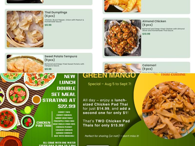Green Mango in St. Johns offers authentic Thai cuisine with a focus on flavorful dishes. Customers often enjoy the red curry beef and special pad Thai, which are made fresh to order. The menu features crispy chicken wings and flavorful peanut chicken, with generous portions loaded with vegetables and meat, often including plenty of meat in each dish. Many diners appreciate the green curry and peanut chicken, finding them very satisfying and tasty. The restaurant has an order machine, allowing customers to order directly without waiting for staff, and food is prepared quickly. Easy free parking and clean toilets make the visit convenient. Service, especially from the owner and staff, is friendly and welcoming, with staff always kind and smiling. Customers have noted that, although there was a rough start for some, the staff made things right, providing excellent service and great food. Overall, Green Mango provides delicious food and attentive service that keeps customers returning for more.