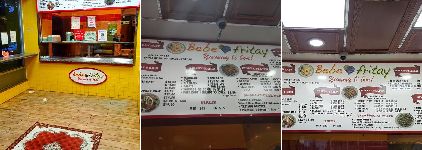 Bebe Fritay is a popular Haitian restaurant in Brooklyn, easily accessible by public transportation. The modern eatery offers a cozy bar setting with street-side seating, perfect for people-watching while savoring delicious Haitian cuisine. The menu features a range of dishes, including fried sausage, sautéed food, and fried bananas. The food is plentiful, fast, and nutritious, with many options to suit various tastes.
